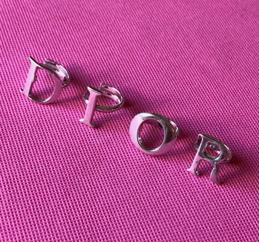 VINTAGE 2000s Christian Dior (John Galliano) Logo Four Letter Ring Set, Silver