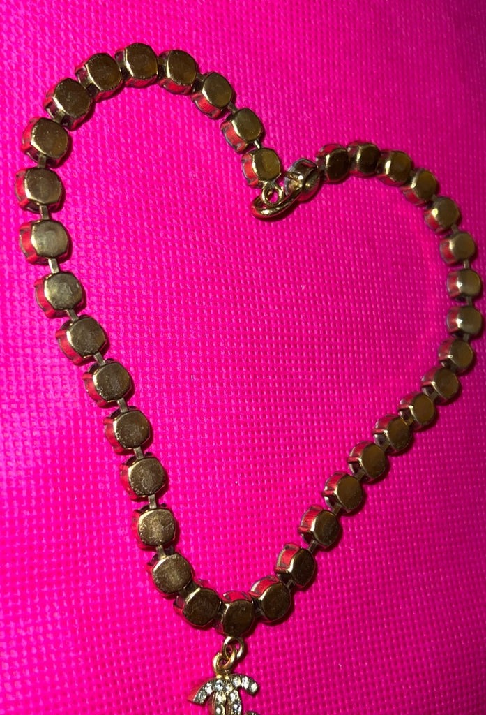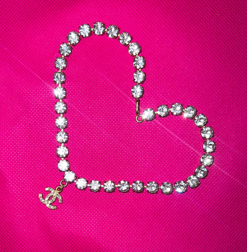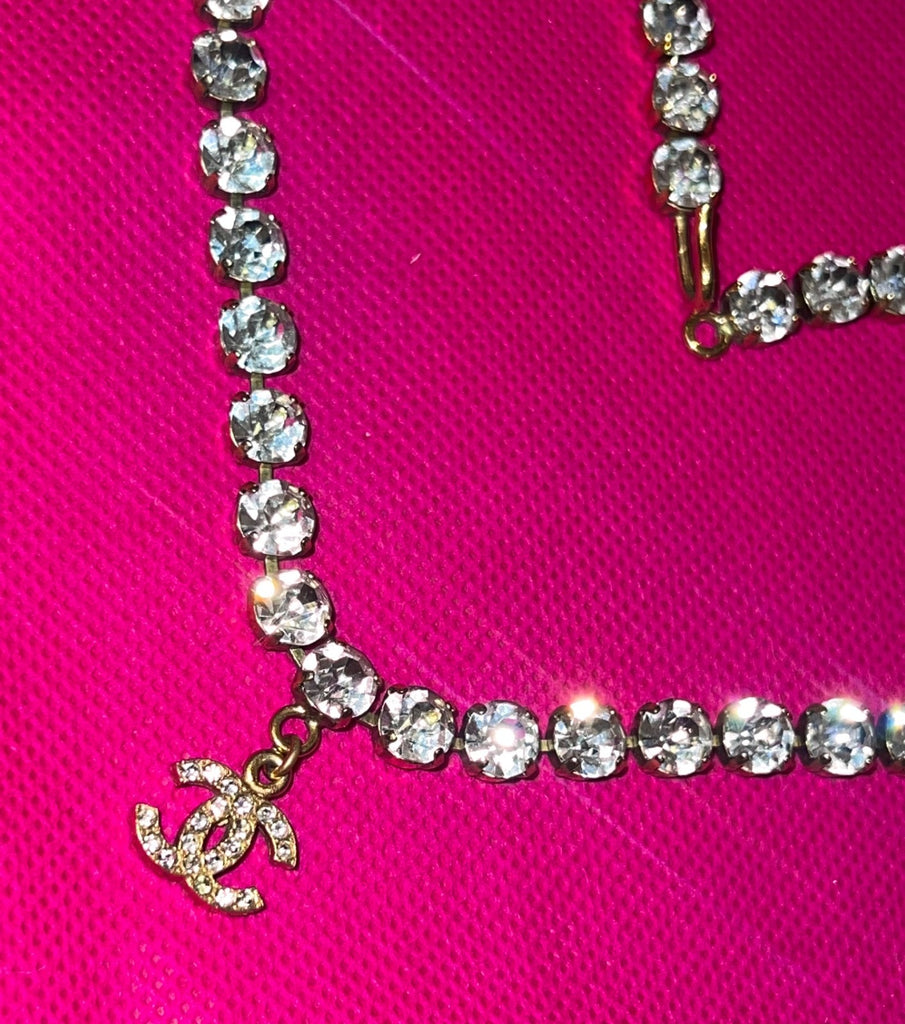 1995 Chanel Vintage Rhinestone Embellished Choker Necklace, CC Drop (95P)